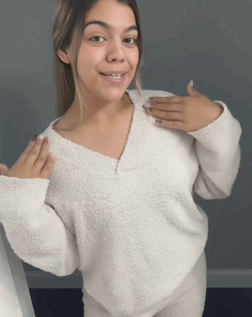 Soft Fuzzy V-Neck Loungewear Set