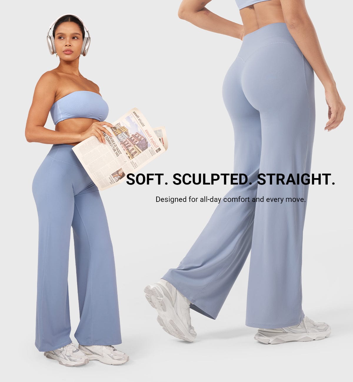 - High-waist straight-leg fit
